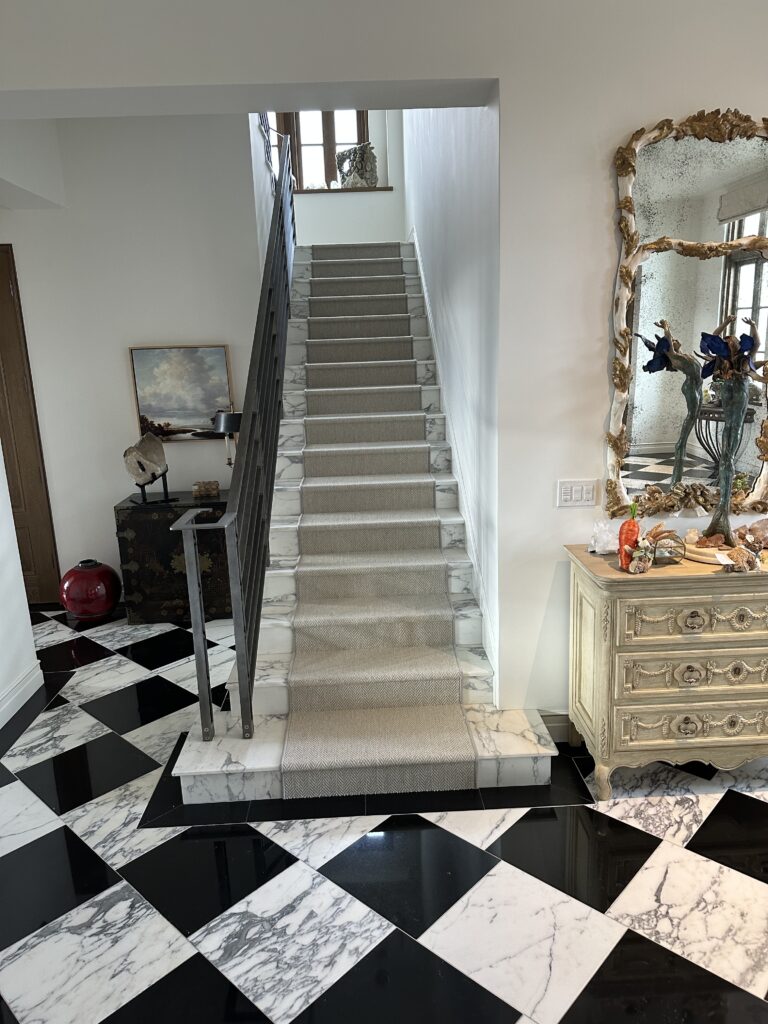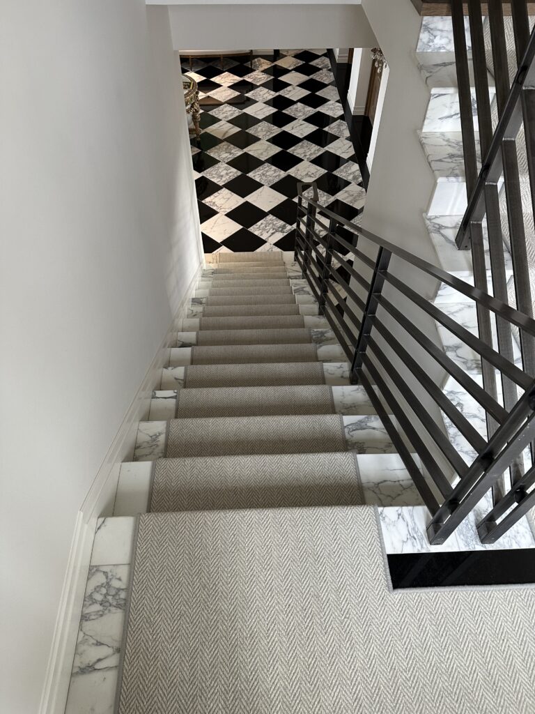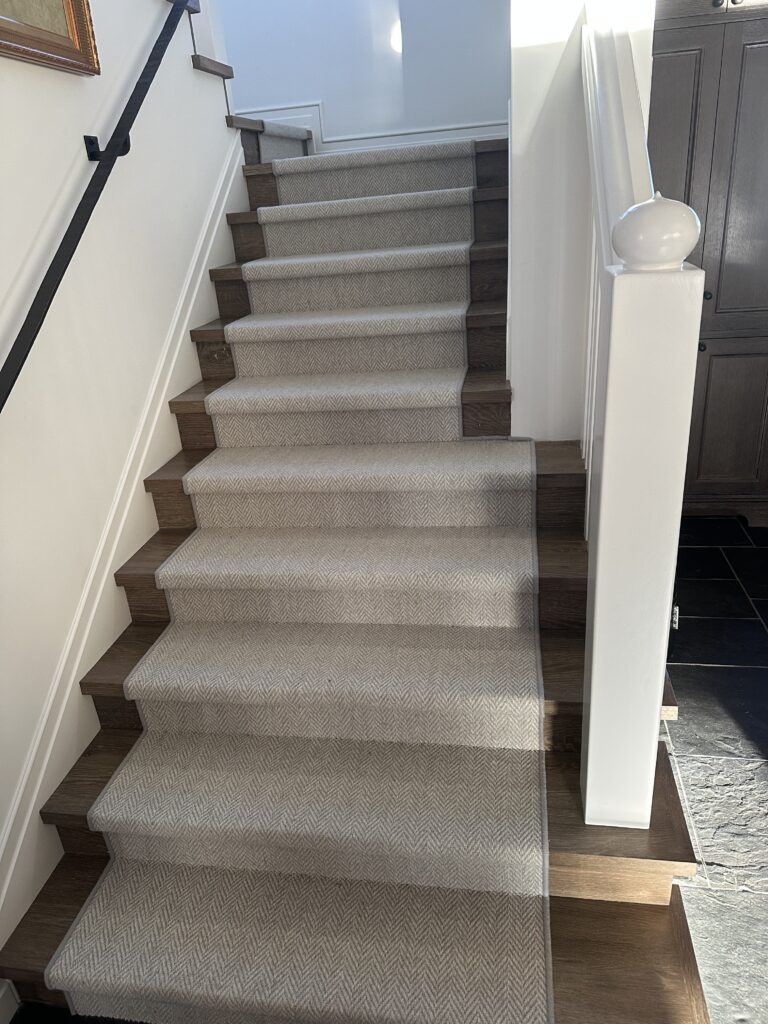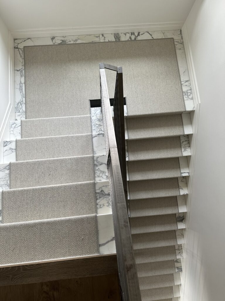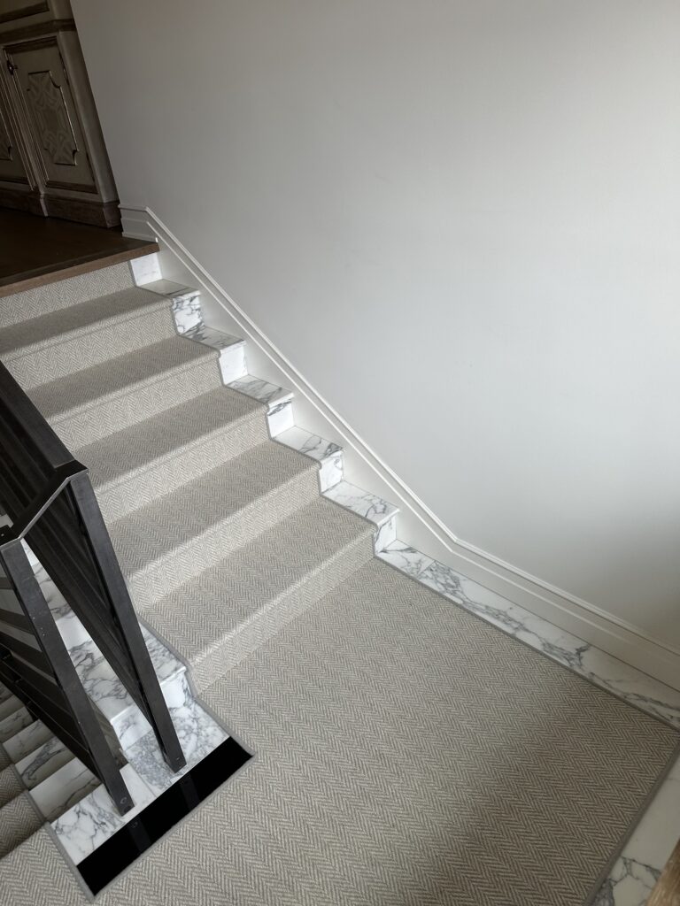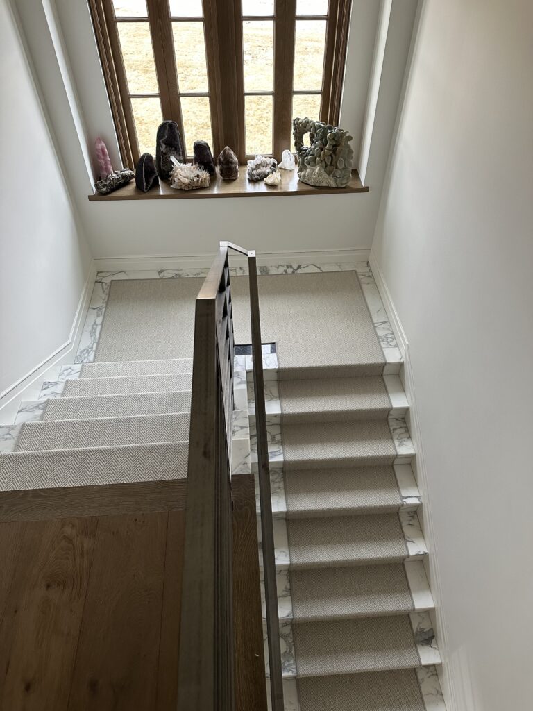 Every detail matters. This custom carpet stair runner completed this stunning home in Sisters, Oregon. By adding the carpet runner over the marble and engineered wood stairs, we not only improved safety for the family but added warmth and sophistication that truly finishes the space.